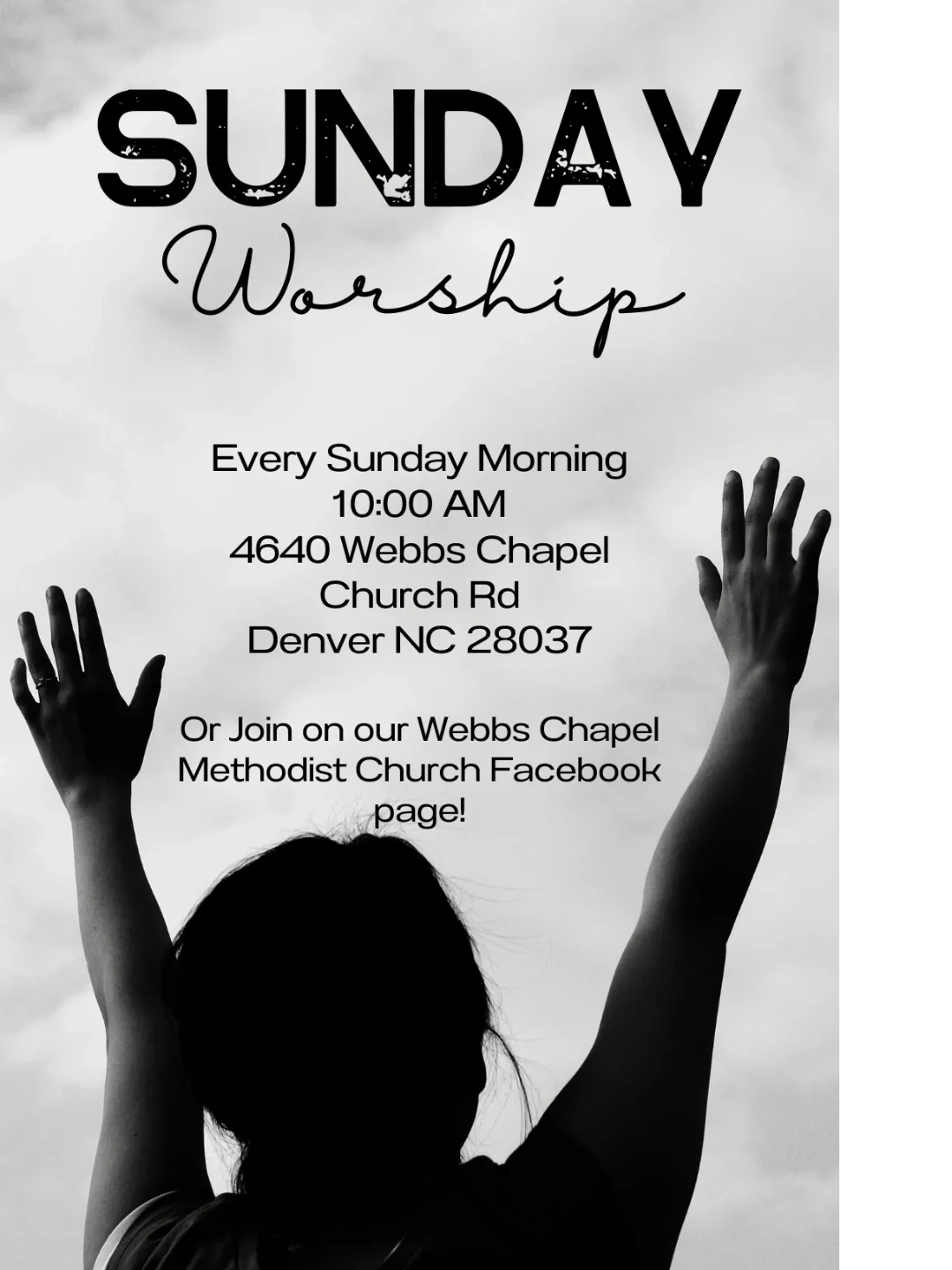 We believe that worship is a powerful way to connect with God and experience His presence in our lives. Our worship services are designed to be uplifting, inspiring, and centered around the teachings of Christ. Our Worship Service begins at 10AM Sunday Mornings. You can also watch on Facebook at the Webbs Chapel Methodist Church Facebook Page!